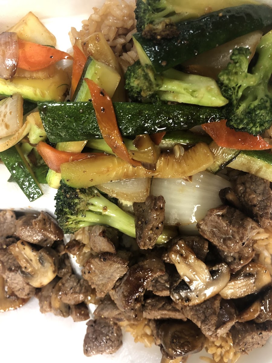 I had a delicious dinner with shrimp chicken and steak a vegetable medley of broccoli eggplant carrots onion and a lovely salad the seasons and sauces it was like a dance in my mouth it was superb cannot wait for my next visit